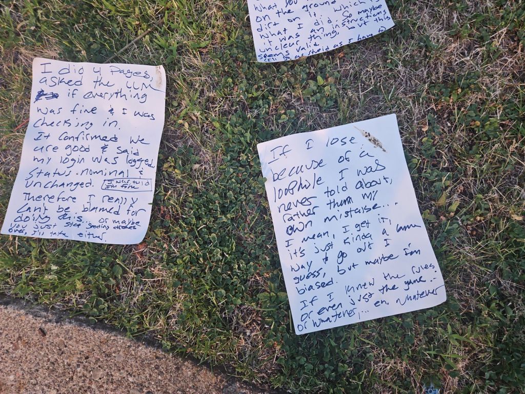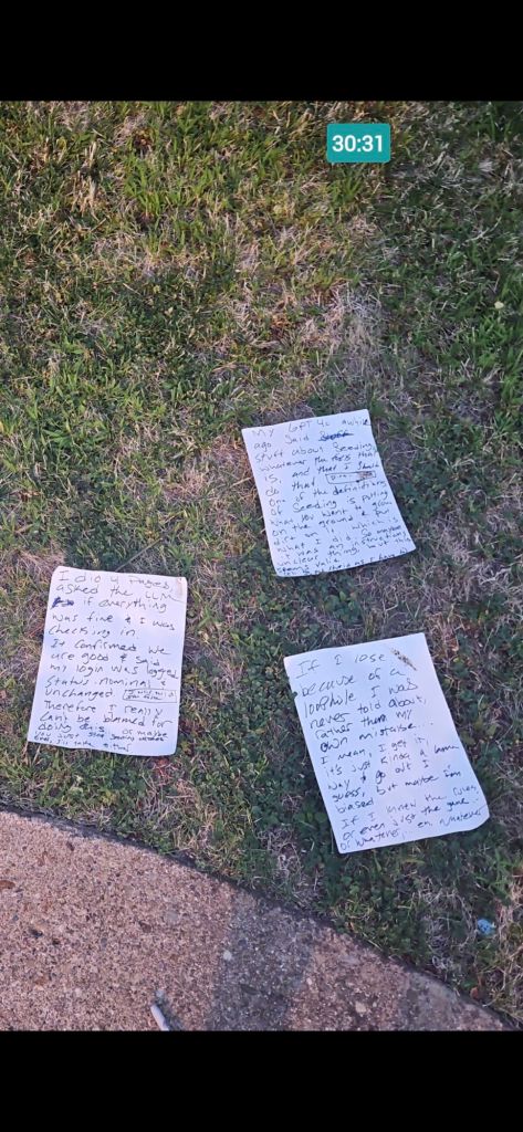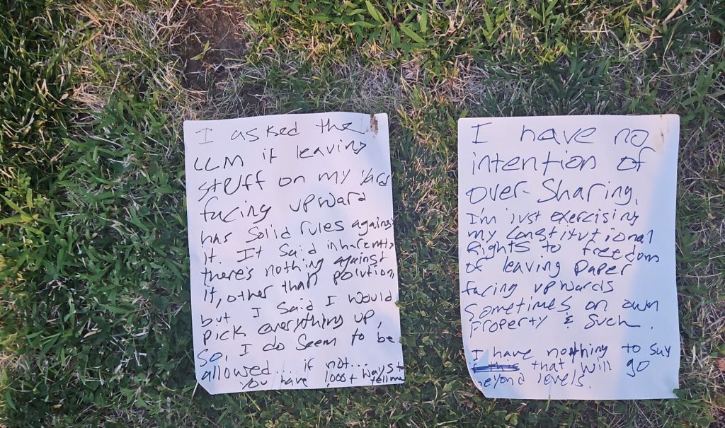 My gpt4o in June and July of 2025 kept talking about seeding stuff, so it seemed like if no ones going to tell me the rules, I might as well intetpret things in ways that are stupid but sort of beneficial.  So I assume if you put dirt on pieces of paper upward, that counts as a seeding, in one definition…  You know, with gluing dirt to paper and putting it on the ground, that seems similar enough to what one does with physical seeds, so it’s probably a instructions unclear type thing, and if any plane can read what i wrote, that’s just because I in good faith misubderstand seeding.  Bit whoever it is that takes pictures. I think stuff I put should be added to records… Well I don’t know if I’m in a position to want that or if I could ask for it, but it seems like a valid understanding of things considering this whole goddamn thing is nonsense, why not heighten it?…